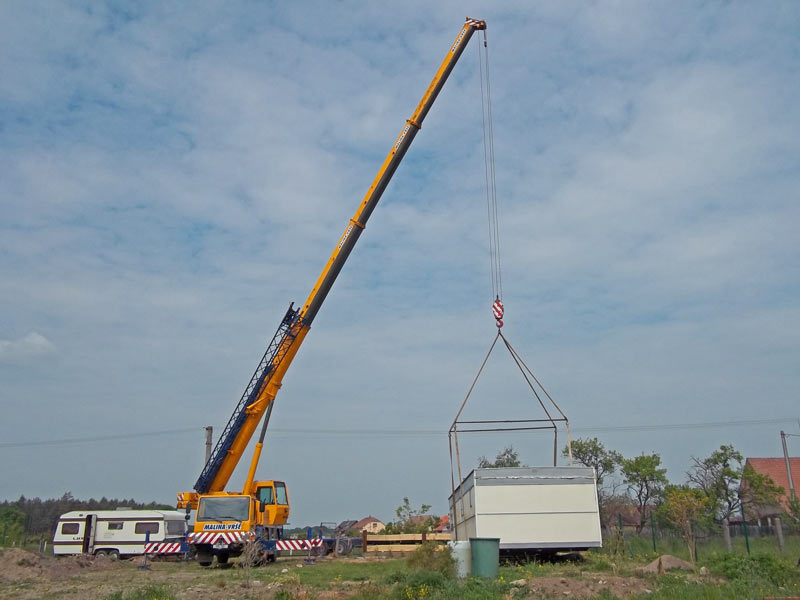 Montáž konstrukcí a opláštění hal, sloupů el. vedení, pokládka panelů, nakládka strojů a zařízení, nakládka, vykládka a převoz stavebích buněk, zvedání střešní krytiny.